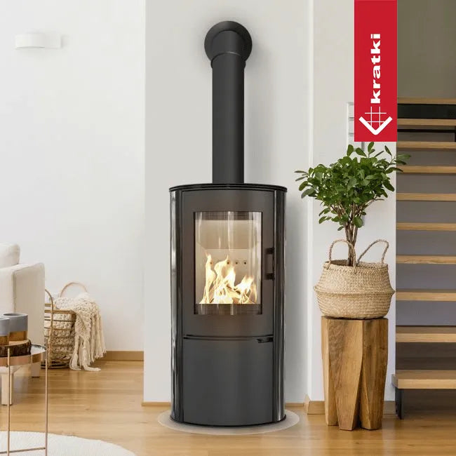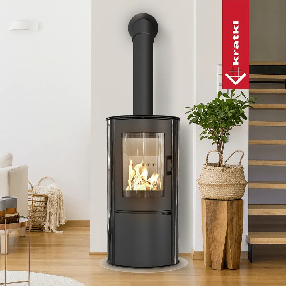 Wood burning steel stove KRATKI AB S/N/DR Ø 150 8 kW black thermotec► KOZA/AB/S/N/DR/BA1