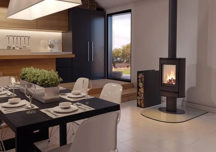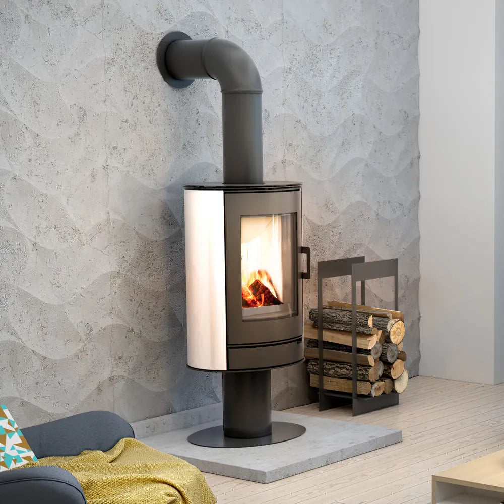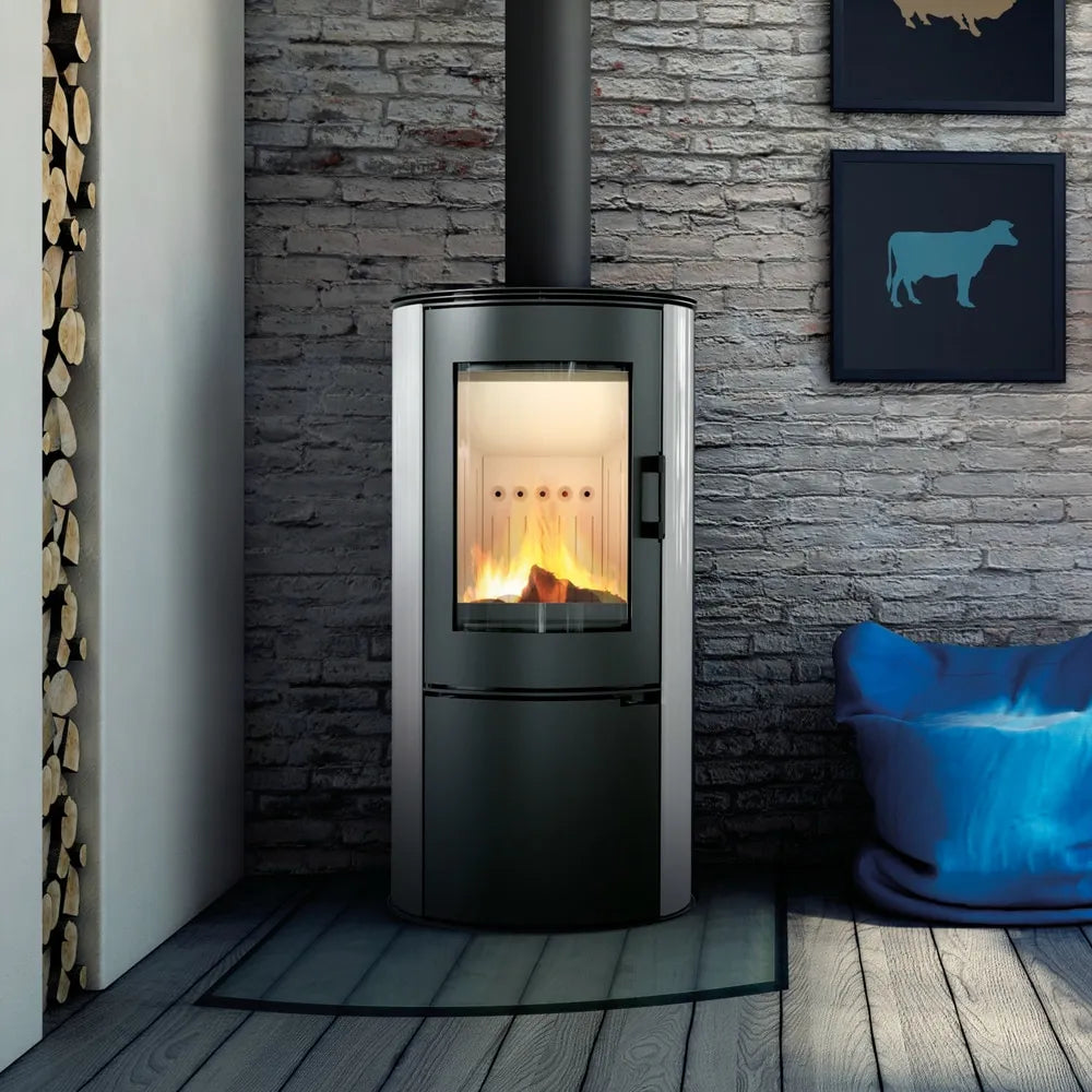 - Versterkte schoonheid van het vuur dankzij de afgeronde ruit