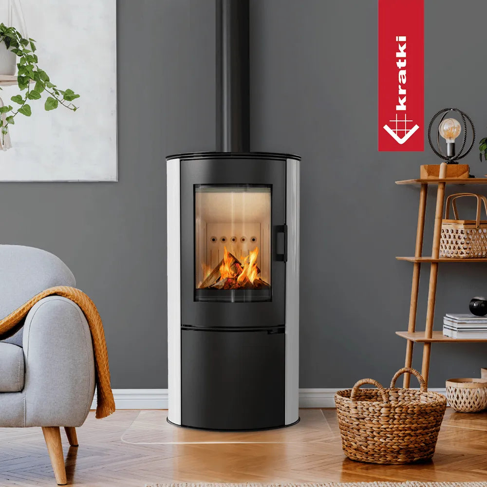 Tiled wood burning stove rotary KRATKI AB S/N/O/DR/GLASS Ø 150 8 kW white► KOZA/AB/S/N/DR/KAFEL/BIALY/B1