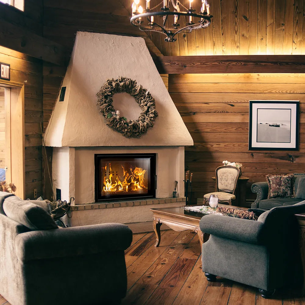- Decoratief, hittebestendig glas dat bestand is tegen temperaturen tot 660°C. Het geeft een haard een moderne en elegante uitstraling en vergroot optisch de voorkant van de inzet.