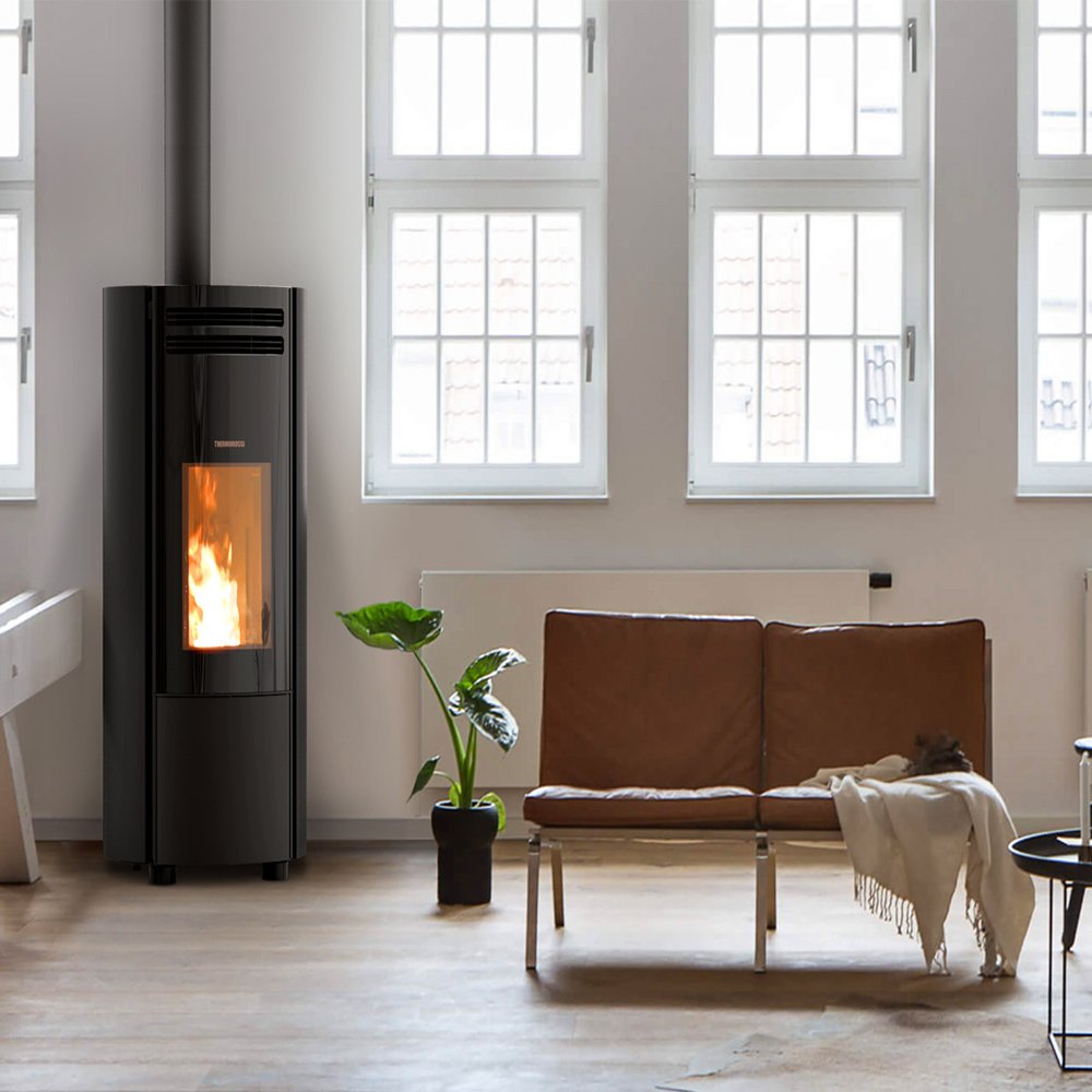 De Thermorossi pelletkachel Popstar 10 is prachtige pelletkachel met een fraaie uitstraling. Het toestel heeft een vermogen van 9,6 kW waarmee u een inhoud tot maar liefst 243 m³ kan verwarmen. De Thermorossi Mood combineert een hoog rendement (90%) met praktische voordelen als een afstandsbediening en een buffer voor het houtpellets van maar liefst 27 kg. Het rookkanaal kan van achteren aangesloten worden.